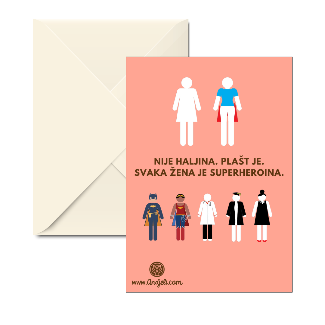 Svi znamo ovaj znak… ali on nikada nije predstavljao haljinu – uvek je predstavljao plašt superheroja! Jer svaka žena je superheroina i svaka može da nosi svoj plašt, odoru, uniformu ili haljinu kako poželi!